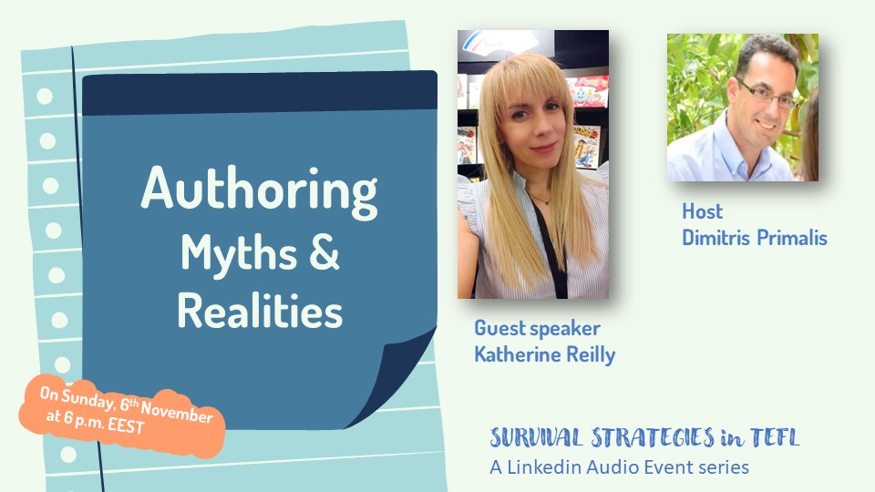 ‘Authoring Myths and Realities’. I would like to thank Mr. Dimitris Primalis for his kind invitation to contribute to his LinkedIn Audio Event series, ‘Survival Strategies in TEFL’. Join us on Sunday, November 6th at 6 p.m. EEST. Free Registration: https://bit.ly/3MCAzkQ